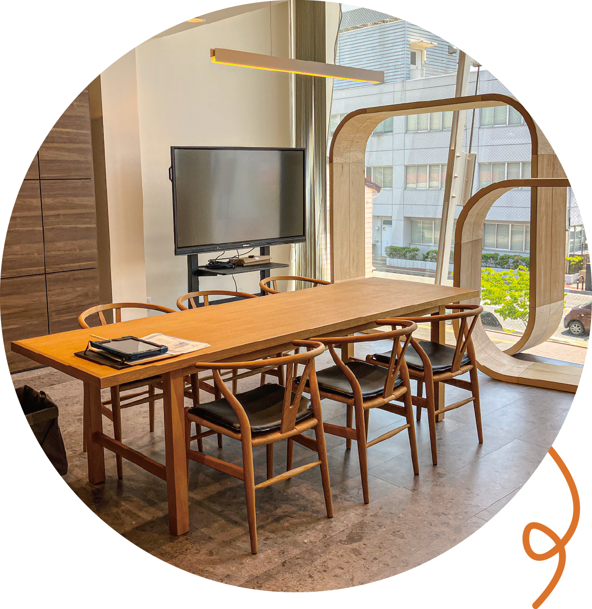 会議室はガラス張りで落ち着きのある明るい空間になっています。外の景色を見ながら会話も弾みます。