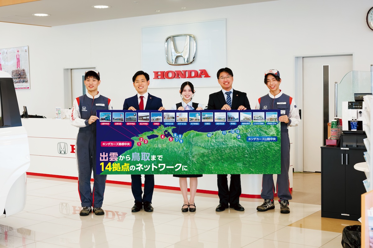 《ホンダカーズ島根中央》は、国内では最後発のホンダディーラーとしてスタートした会社ですが、他社にはないサービスで支持を広げ、今では島根県内で最大規模の5拠点を展開しています。 2025年度末までに《ホンダカーズ山陰中央》と統合し、鳥取県を含む14店舗の体制へ。中四国のホンダの地場販社では最大のディーラーになります。 車両管理台数も5万台へ増え、より早い納車や質の高いアフターサービスが可能に。販売力・技術力ともに全国でも高く評価されており、研修や奨学金支援で若手の成長も応援しています。